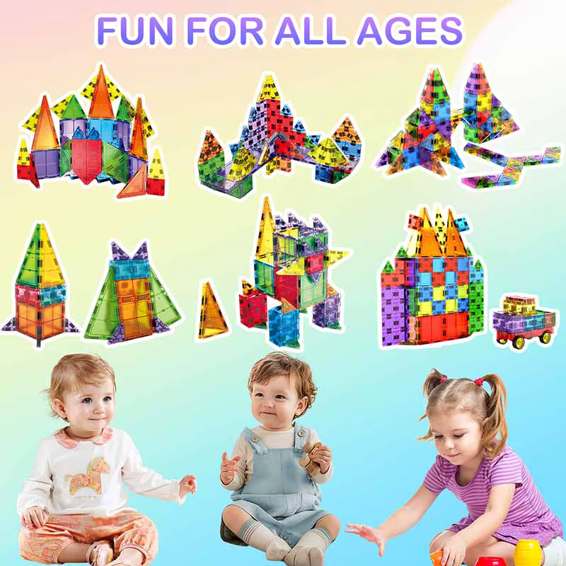 De magneten zorgen voor stevige verbindingen, waardoor zelfs jonge kinderen eenvoudig torens, vormen en kleine structuren kunnen bouwen.